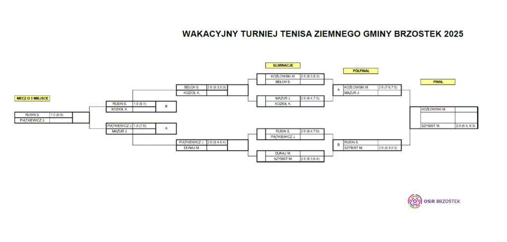 Turniej, mimo zmiennych warunków pogodowych, dostarczył widzom wielu emocji, widowiskowych wymian i sportowych wrażeń. Kolejna edycja zawodów odbędzie się już w odświeżonej formule – w najbliższych miesiącach planowany jest remont kortu, dzięki czemu przyszłoroczna rywalizacja odbędzie się w znacznie lepszych warunkach.