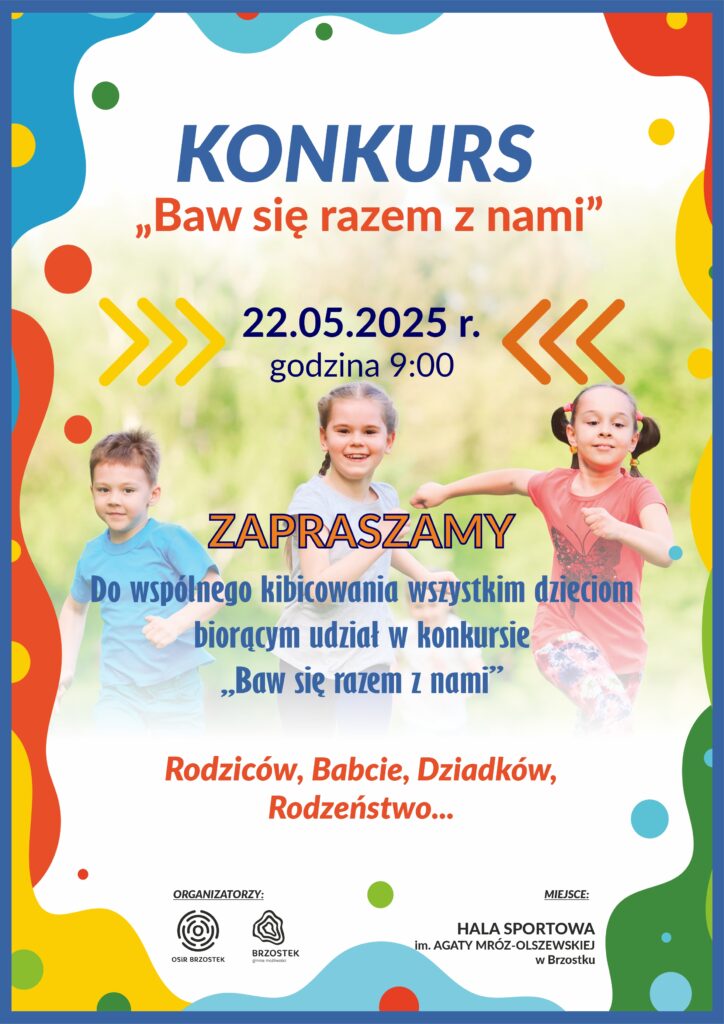 Już 22 maja 2025 r. o godzinie 9:00 w Hali Sportowej im. Agaty Mróz-Olszewskiej w Brzostku odbędzie się wyjątkowe wydarzenie – Konkurs „Baw się razem z nami”!