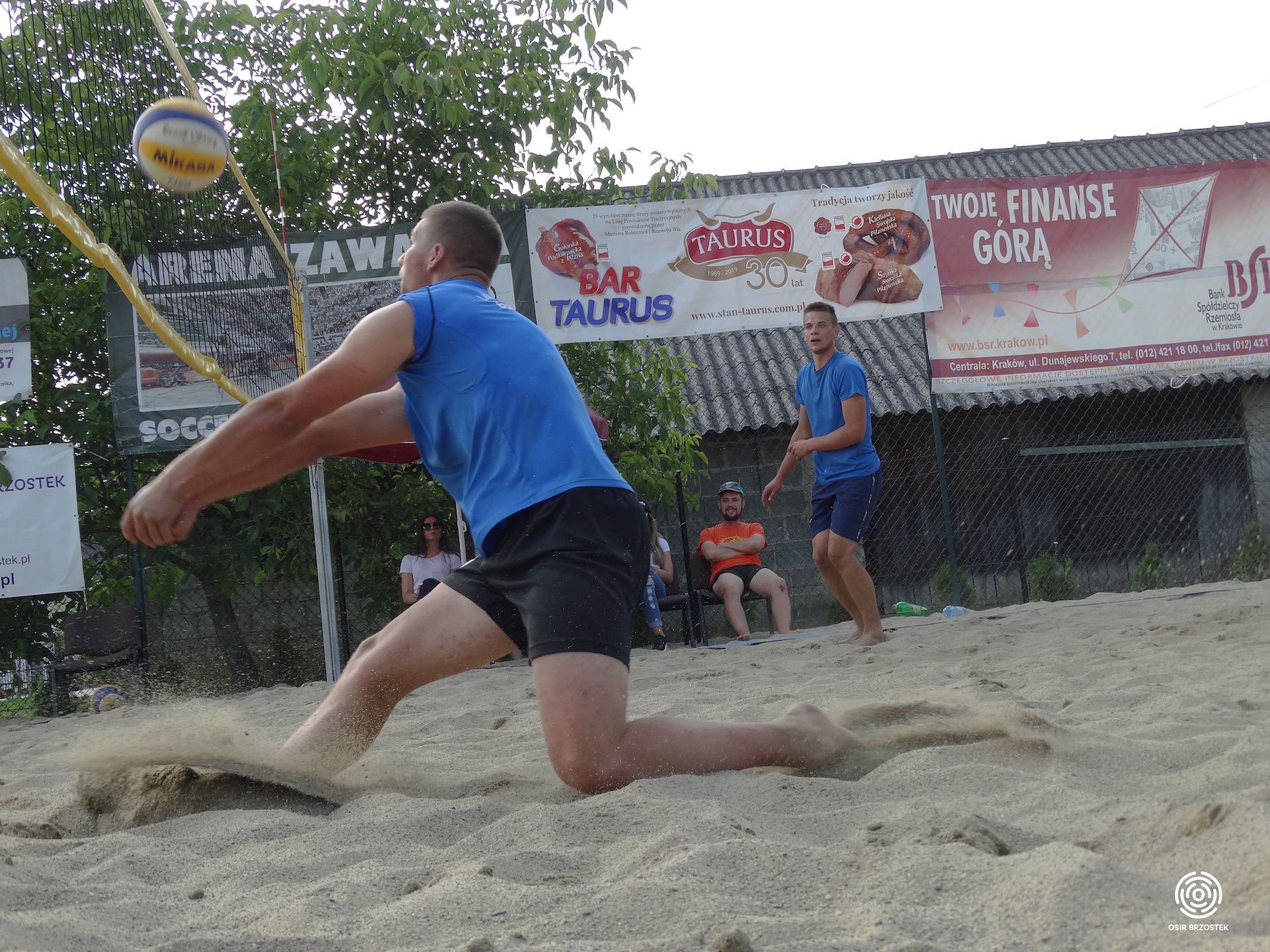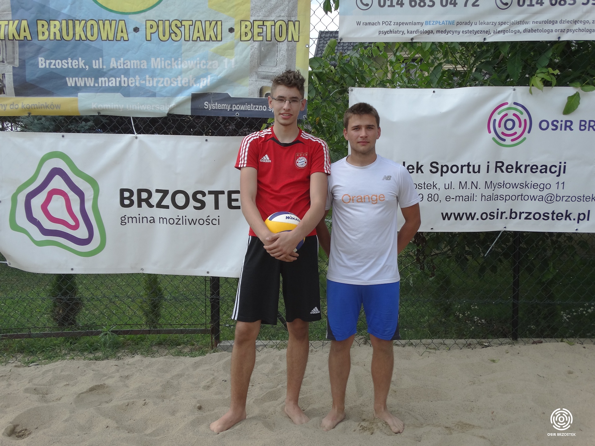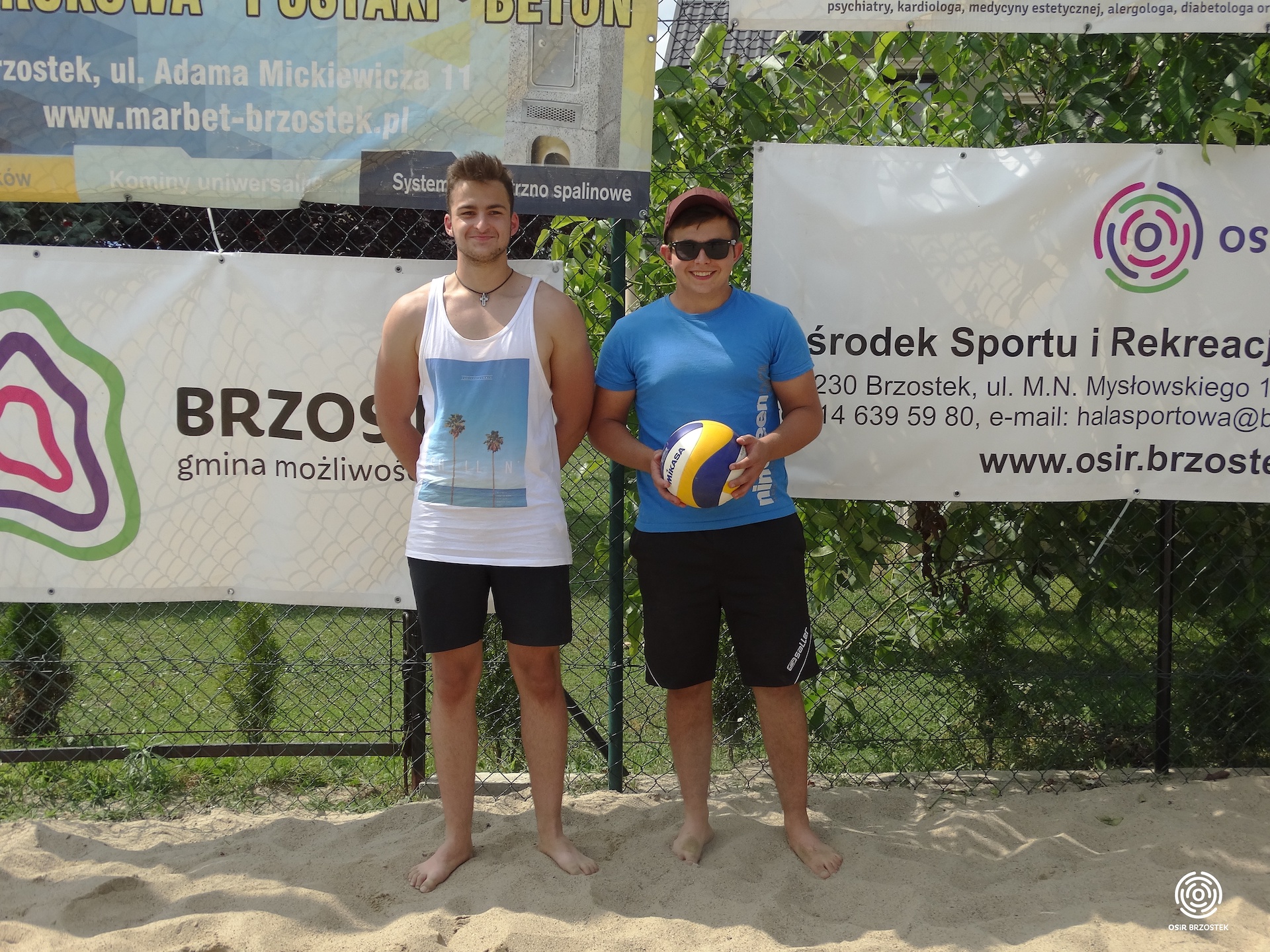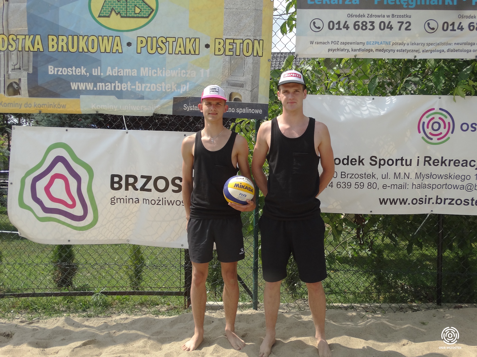 Turniej tym razem odbył się w sobotę (20.07) i rozpoczął się o godzinie 13.00. Uczestniczyło w nim 9 par z terenu gminy. Już w pierwszych pojedynkach widać było, że każdej parze zależy na zwycięstwie. Zawodnicy dawali z siebie wszystko. Do sporej niespodzianki doszło w drugiej serii spotkań, gdzie para Golec Sz./ Kolbusz M. po bardzo zaciętym pojedynku wygrała na przewagi z obrońcami tytułu braćmi Sobczyk. Wiadomo już było, że zawodnicy z Zawadki Brzosteckiej nie zwyciężą w Mistrzostwach trzeci raz z rzędu. W decydującym o zwycięstwie starciu spotkały się pary, które w ubiegłym roku zdobyły miejsca na podium Lisak K./Lisak Ł.(3 miejsce) oraz Mroczkowski P./ Bik Ł.(2 miejsce). Finał został rozegrany do dwóch wygranych setów. Od początku para Mroczkowski P./ Bik Ł. pewnie wypracowała sobie przewagę, której nie oddali do końca spotkania i po ostatnim punkcie mogli cieszyć się ze zwycięstwa w całym turnieju. W meczu o trzecie miejsce po raz drugi na tej imprezie zagrały pary Golec Sz./ Kolbusz M. i Sobczyk M./ Sobczyk D. Również i to spotkanie przyniosło wiele emocji, a o zwycięstwie musiała zadecydować rywalizacja na przewagi. Z tej wojny nerwów zwycięsko wyszli tym razem zawodnicy z Zawadki Brzosteckiej, którzy wygrali 26:24 i mogli świętować zdobycie 3 miejsca. Po meczu finałowym najlepsze pary otrzymały pamiątkowe statuetki i medale. Nagrody wręczał kierownik OSiR–u Andrzej Piękoś oraz sołtys Zawadki Brzosteckiej Marcin Sas. Cały turniej przebiegł w miłej atmosferze, słoneczna pogoda sprzyjała rozgrywkom, a licznie zgromadzeni kibice wraz z zawodnikami stworzyli fantastyczne widowisko. Gratulujemy zwycięzcą, a pozostałym zawodnikom dziękujemy za udział i do zobaczenia za rok !